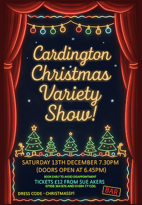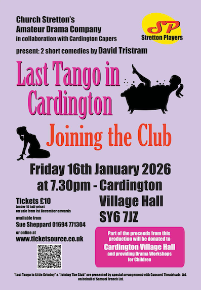 | Cardington Village Hall | 7.30pm £5 entry On the door ENQUIRIES 01694 771295 Refreshments available to purchase |